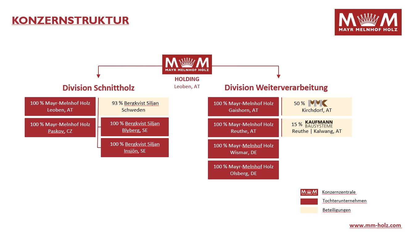 Das faszinierende Multitalent Holz und Mayr-Melnhof gehören seit mehr als 150 Jahren zusammen. Rund 1.695 Mitarbeiterinnen und Mitarbeiter an acht Standorten in Österreich, Deutschland, Tschechien und Schweden be- und verarbeiten mit Leidenschaft den wertvollen Rohstoff zu zeitlosen und modernen Holzprodukten. Zukunft ist heute: Wir denken an die nächsten Generationen und handeln nachhaltig.